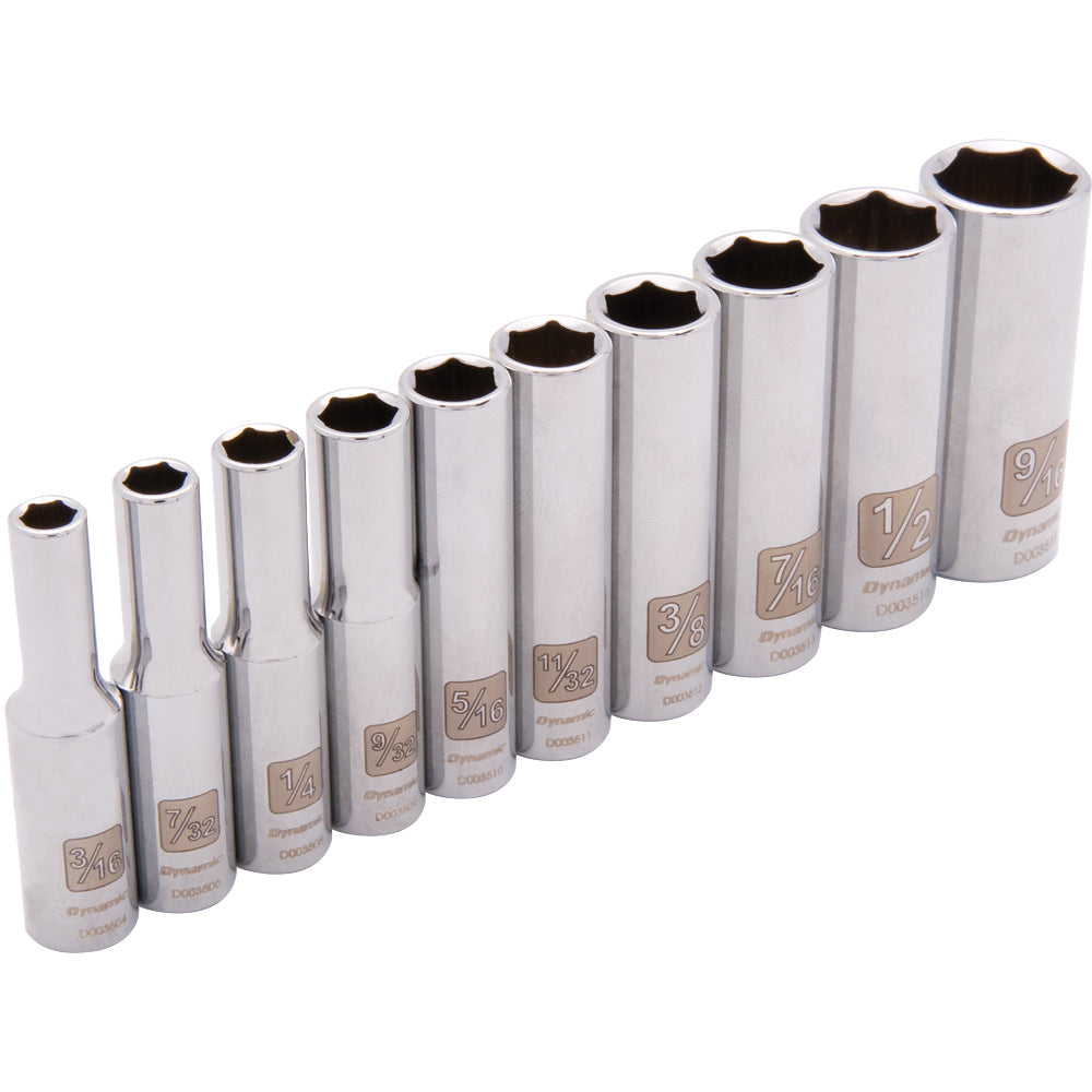 Ensemble de 10 douilles profondes SAE à 6 pans à entraînement 1/4" : un ensemble de douilles polyvalent, comprenant 10 douilles profondes SAE à 6 pans conçues pour les outils à entraînement 1/4", garantissant résistance et durabilité pour les tâches mécaniques.