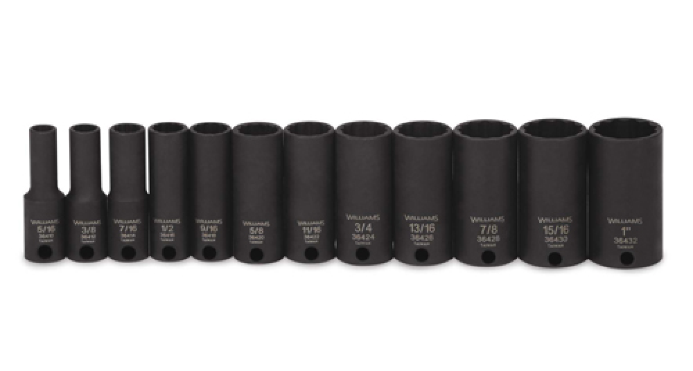 L'ensemble de 12 douilles profondes SAE à 12 pans et entraînement 3/8 po comprend des douilles profondes conçues pour atteindre les fixations encastrées avec une application de couple puissante.