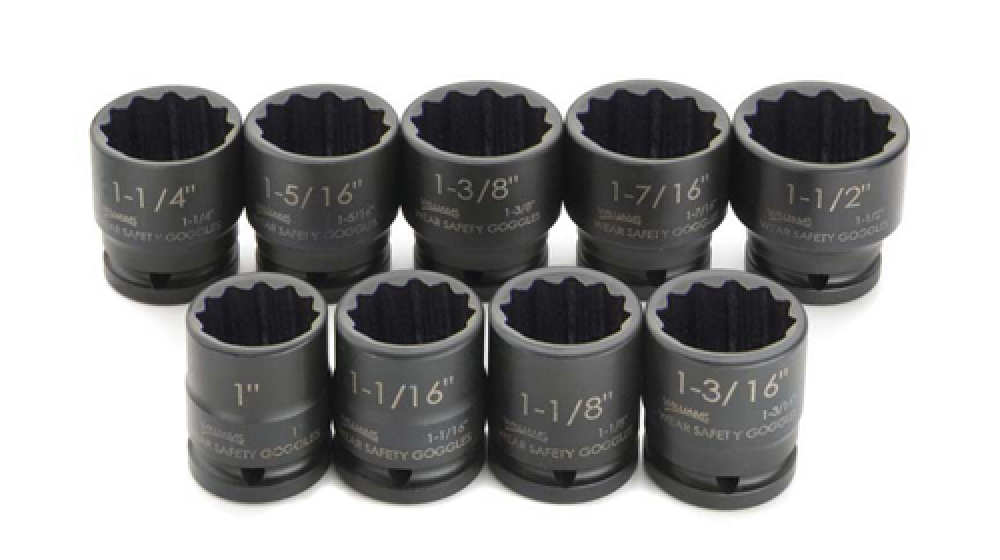 L'ensemble de 17 douilles peu profondes SAE à 12 pans et entraînement 3/4 pouce offre une gamme complète de douilles peu profondes, adaptées aux grandes fixations dans les applications professionnelles.