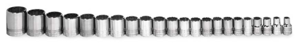 L'ensemble de 20 douilles métriques peu profondes à 12 pans et entraînement 3/8 po comprend une gamme complète de tailles, parfaites pour s'attaquer à une variété de tâches de fixation.