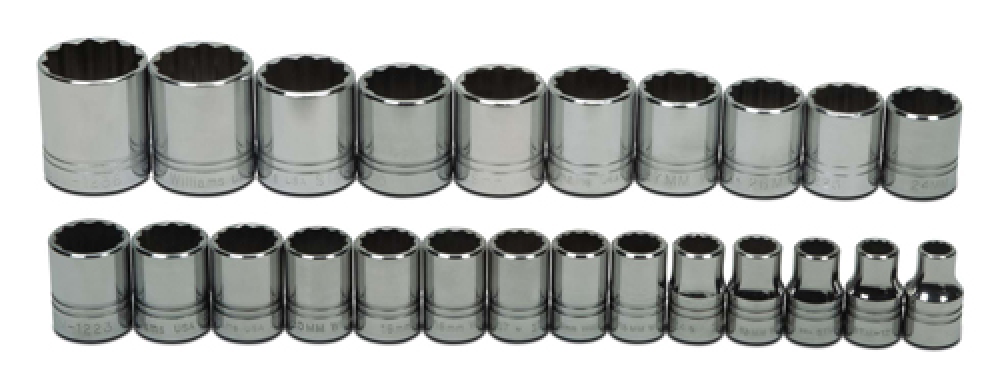 Jeu de 24 douilles métriques peu profondes à 12 pans, entraînement 1/2"