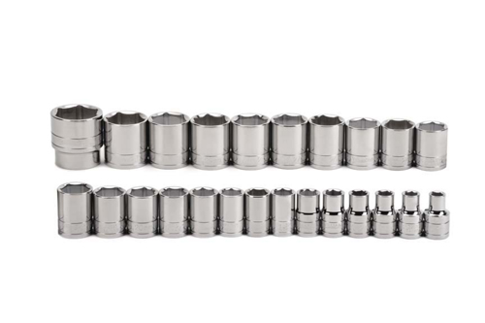 L'ensemble de 24 douilles métriques peu profondes à 6 pans de 1/2 pouce offre une sélection complète de douilles, parfaites pour s'attaquer à diverses tâches de fixation avec fiabilité et facilité.