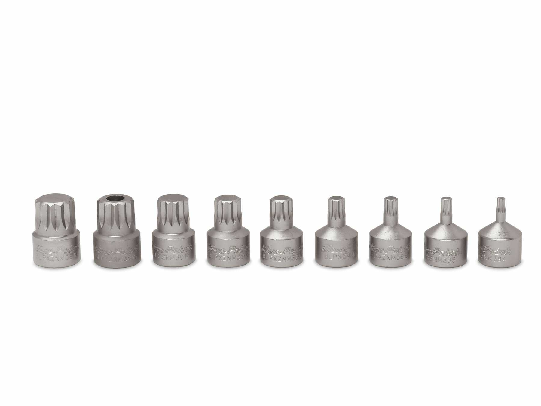 The BLPXZNM389 9-piece 3/8 inch Torx set includes various sizes, ensuring versatility for different fastening tasks.