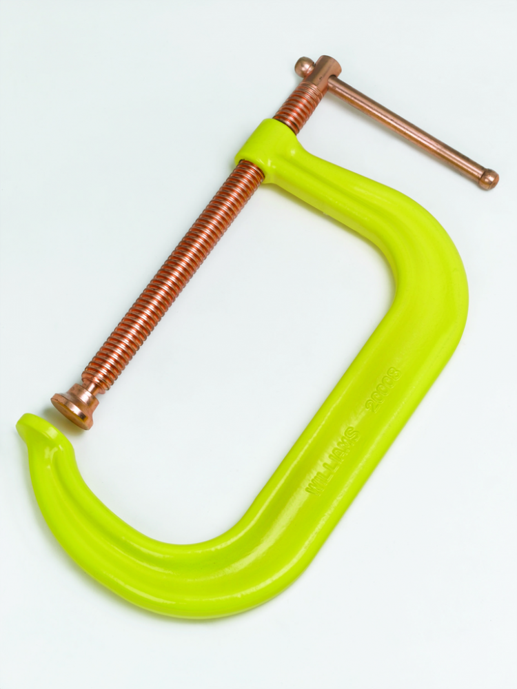 The Drop Forged C-Clamp with Copper Plated Screw, Yellow, provides robust clamping power with a copper screw, suitable for high-temperature applications.