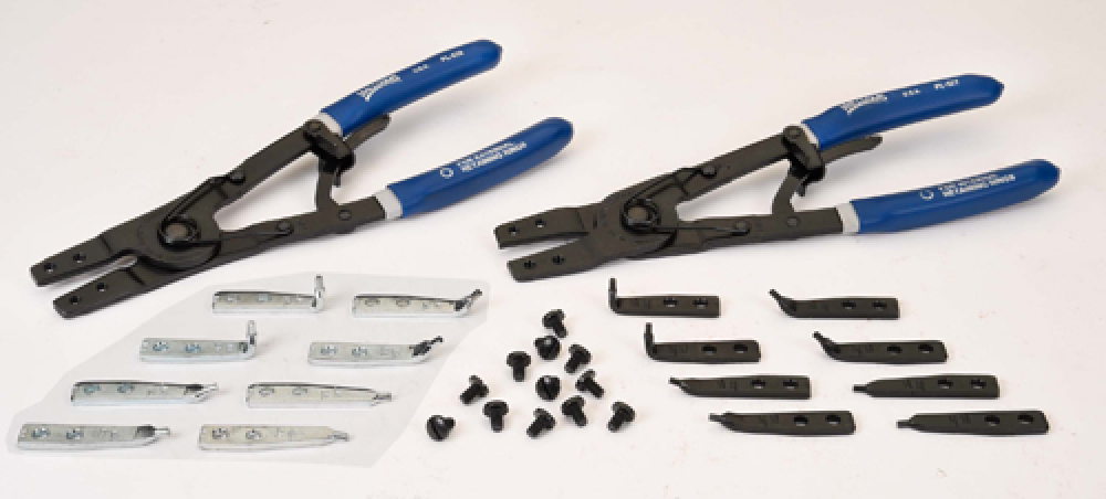 The 10 pc heavy-duty retaining ring pliers set includes a range of pliers for installing and removing retaining rings of various sizes, essential for securing components in automotive and industrial applications.