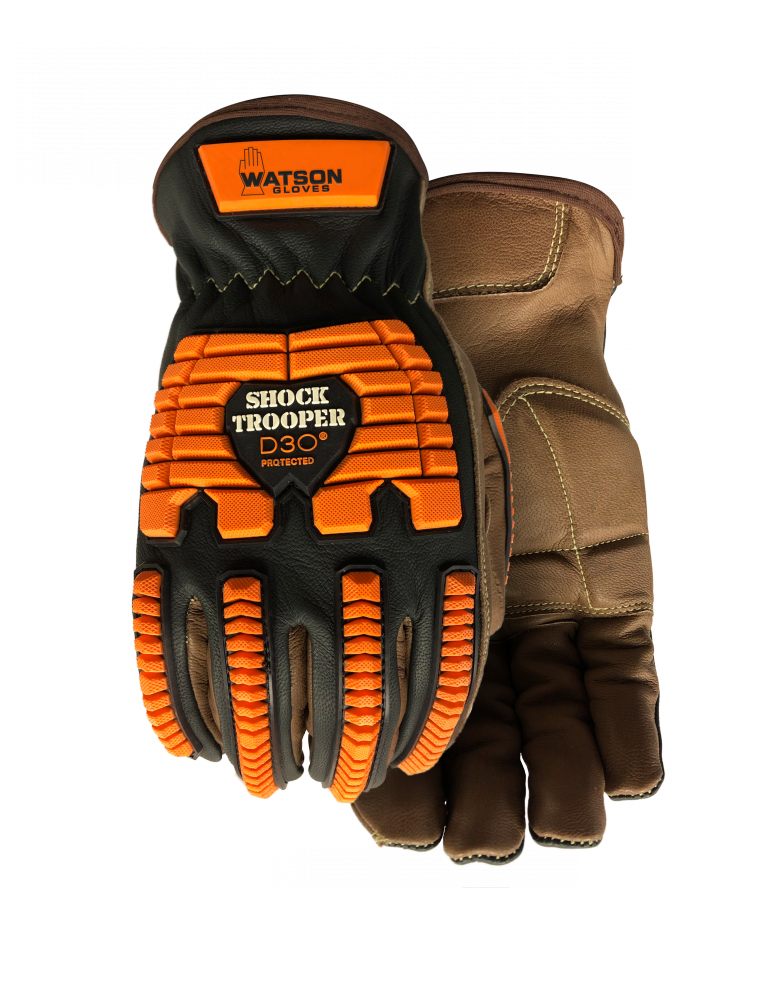 ANSI A7 Cut Shield™ is a cut resistant liner made from a blend of P-aramid, steel and modacrylic fibres. DryhideTM water and oil resistant full-grain goatskin leather palm and back of hand is hard wearing and durable providing great dexterity. Knuckle and finger components feature D3O® iA, a pioneering ingredient designed to enhance back-of-hand impact protection. Moreover, Impact Additive gives 34% more protection and is 20% softer than standard TPR, at the same thickness. Vibration absorbing EVA foam padded palm patch and wrist patch. Stitched with Kevlar® thread provides strength and durability. Snug-fitting shirred elastic wrist with slip-on style cuff for easy on/off